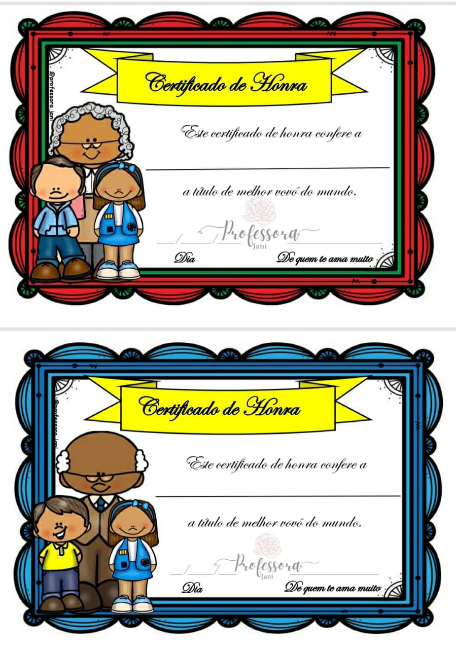 ✅ Certificado de melhor avô e avó